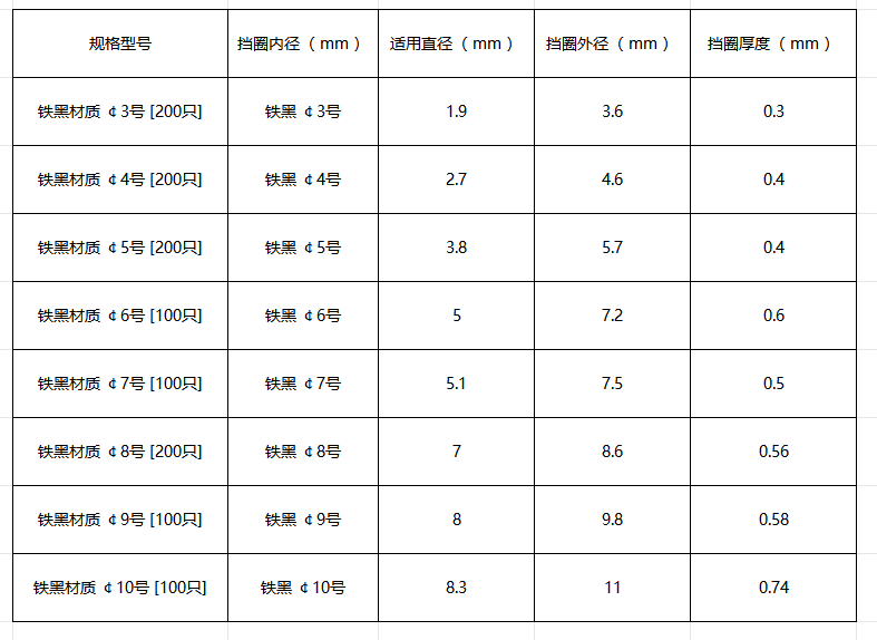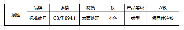 标准号:GB/T 894.1 性能等级:A级 材质:碳素钢(65Mn) 表面处理:本色(氧化处理) 规格范围:支持轴径规格定制...