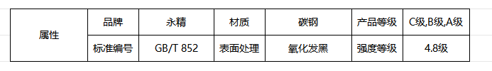 GB/T852-碳钢-C级,B级,A级-4.8级-氧化发黑