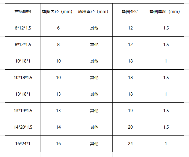 2 建议根据密封压力选择合适的垫圈厚度