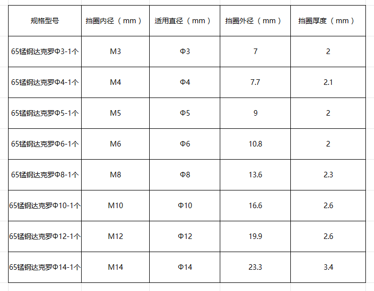 2 高强弹性基体:65锰钢提供高弹性与抗疲劳强度,确保垫圈在长期使用中保持稳定的锁紧力