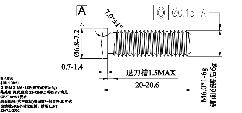 GB/T 10432.1-M6X20-10B21-镀环保白锌