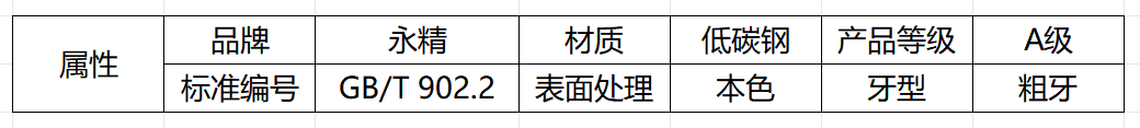 标准号:GB/T 902.2 性能等级:A级 材质:低碳钢 表面处理:本色 规格范围:支持直径、长度及头部规格定制...