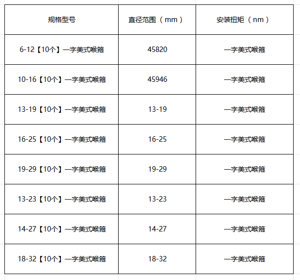 1 请根据软管的外径和材质硬度选择合适的喉箍规格,确保箍带能完全包裹并提供足够的压紧力