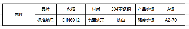 DIN6912-304不锈钢-A级-A2-70-洗白