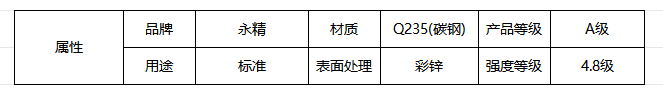 A级-4.8级-Q235(碳钢)-彩锌