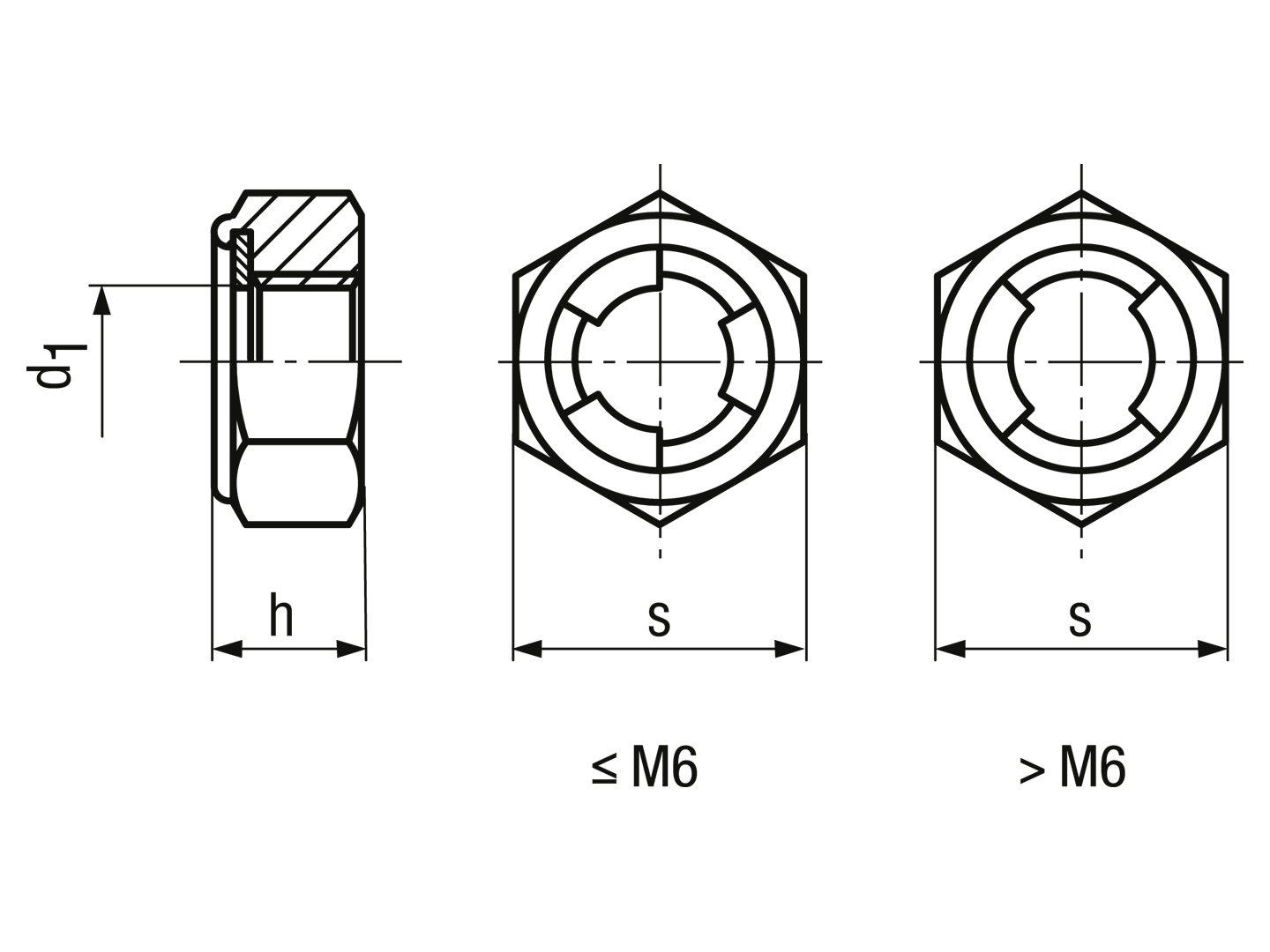 预置扭矩六角钢片防松螺帽 全金属, 厚型
