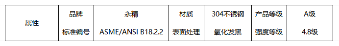 ASME/ANSI B18.2.2-304不锈钢-A级-4.8级-氧化发黑