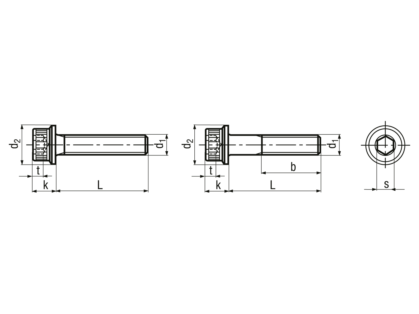 有头内六角穴螺丝 薄头, 半牙 / 全牙