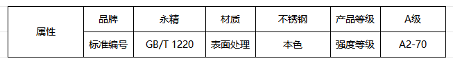性能等级:A2-70(不锈钢性能等级)