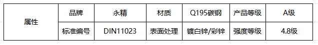 DIN11023-Q195碳钢-A级-4.8级-镀白锌/彩锌