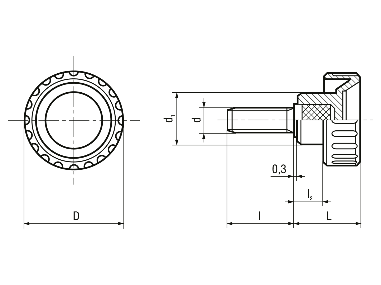 凹槽凹纹旋钮螺丝 外螺纹杆, 碳钢镀锌