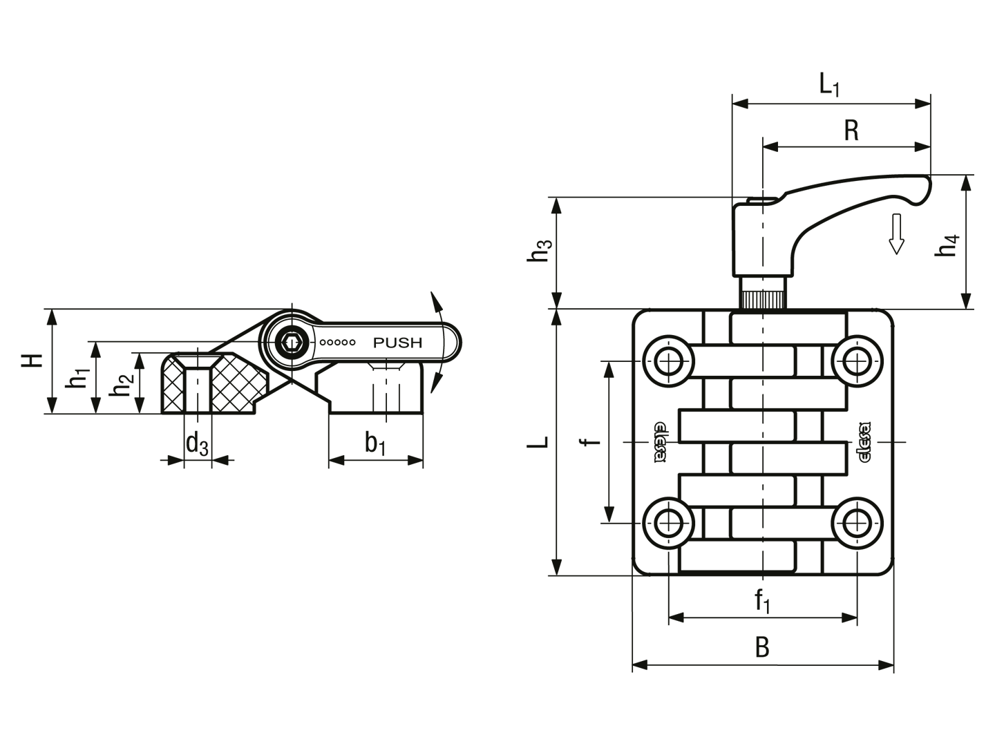 > 带安全夹紧杆的铰链 带沉头螺丝所需的通孔