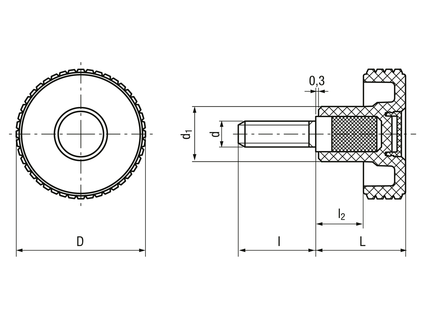 > 滚钻石花旋钮螺丝 外螺纹杆, 碳钢镀锌