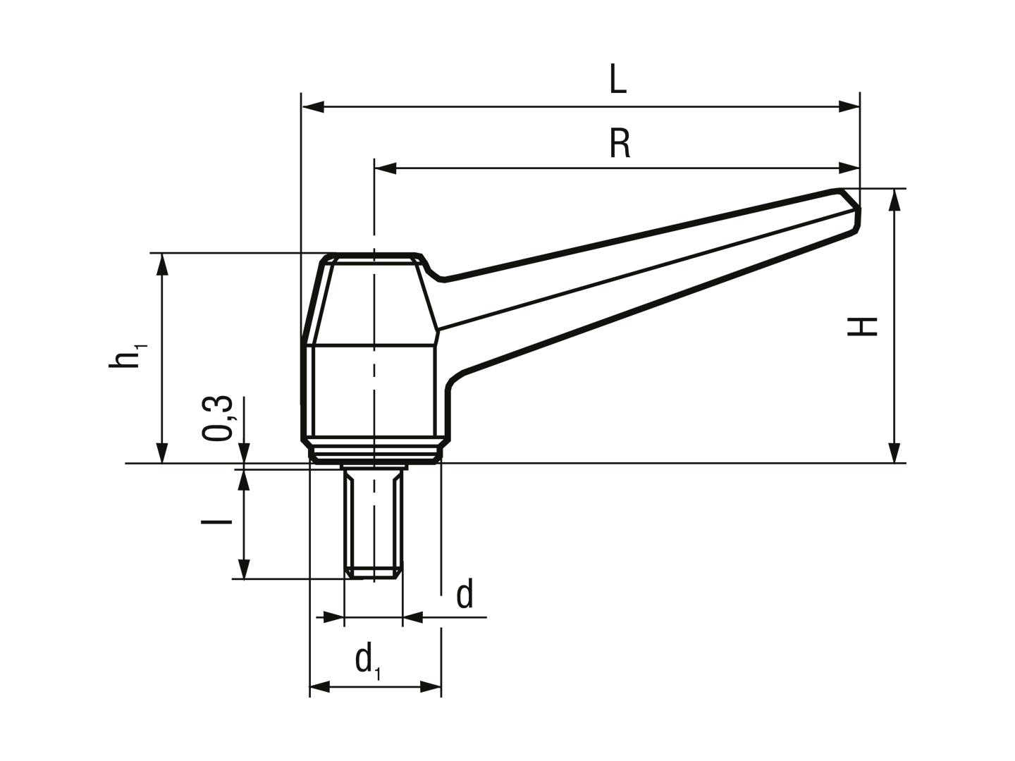杠杆式把手 外螺纹杆, 碳钢镀锌