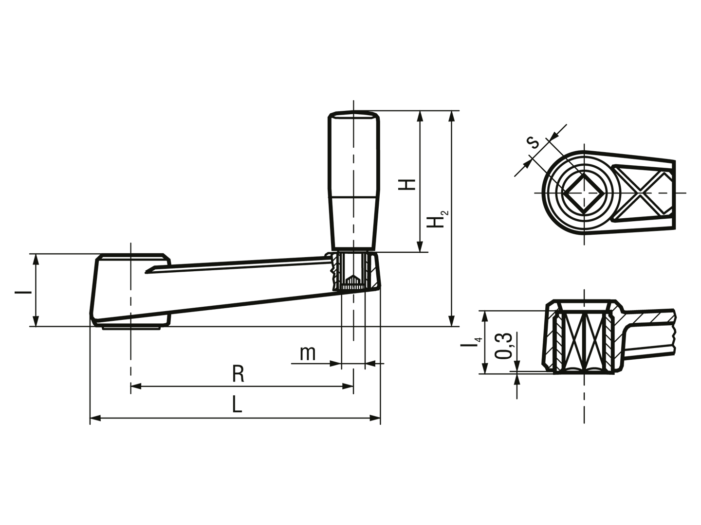 > 旋转把手 旋转式手柄, 安装孔碳钢染黑和公差H