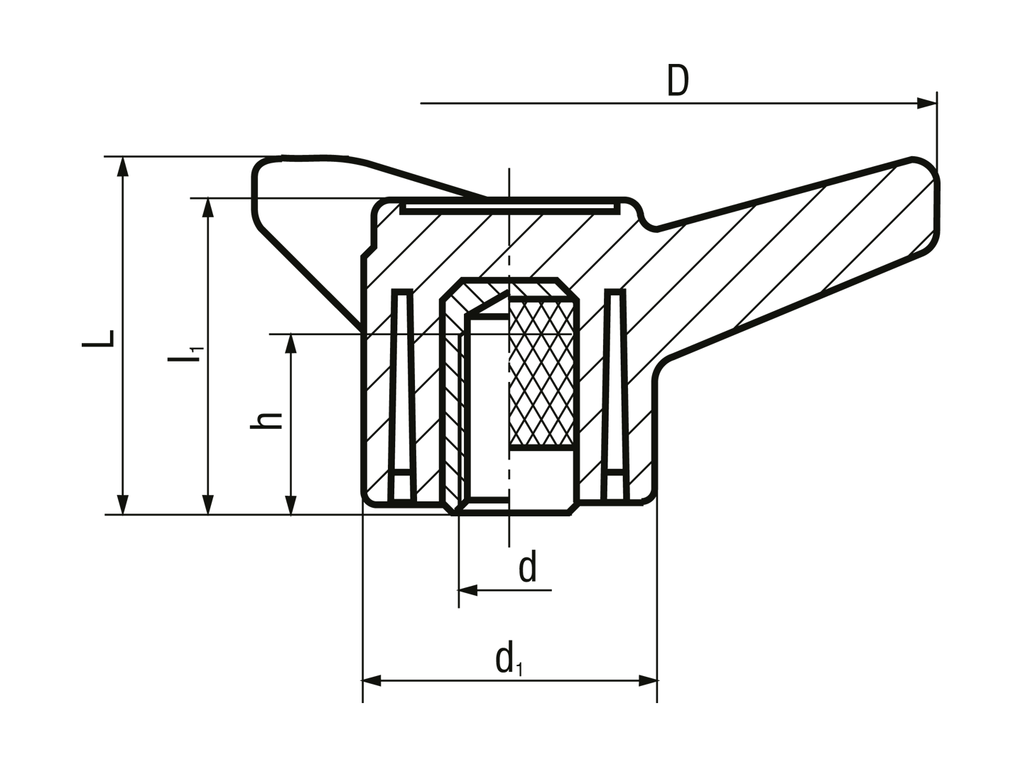 三臂式旋钮帽 金属崁入孔 铜衬套, 盲孔内螺纹
