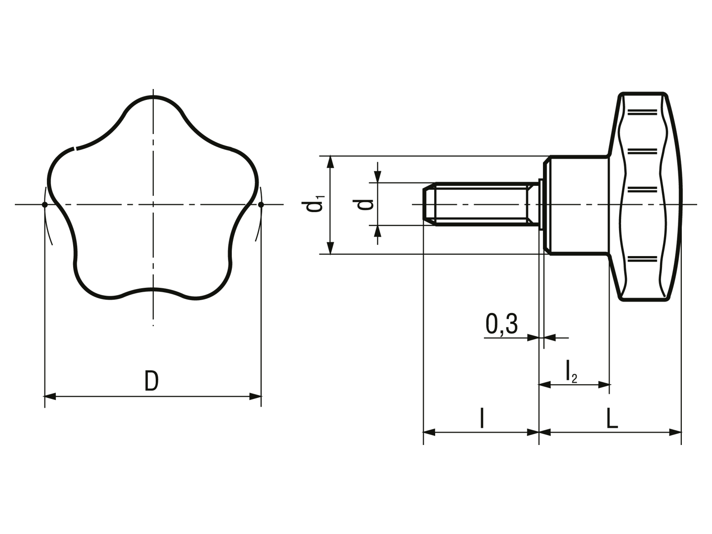 > 星型旋钮螺丝 外螺纹杆,不锈钢
