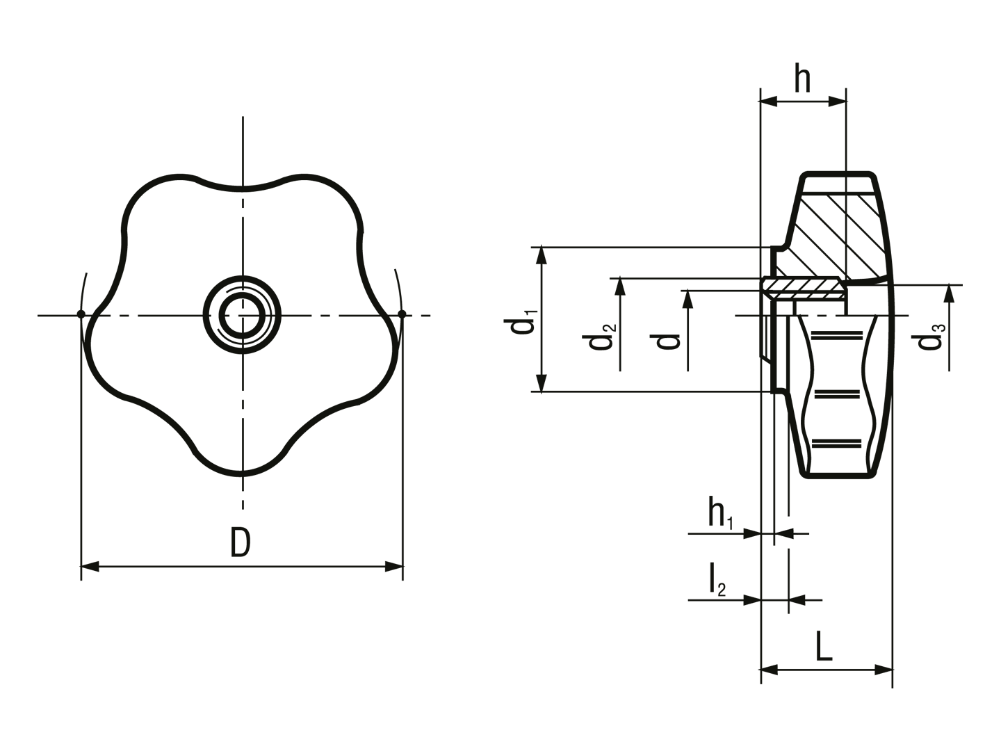 > 星型旋钮帽 短型,安装孔碳钢染黑,攻通孔螺纹