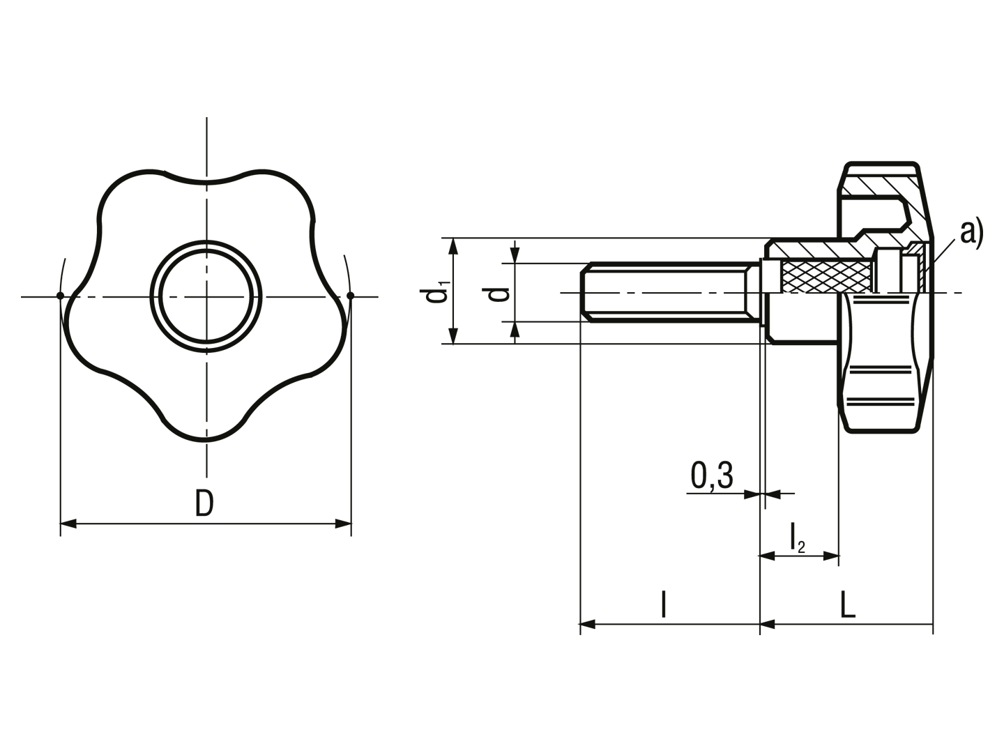 > 星型旋钮螺丝 外螺纹杆, 碳钢镀锌1