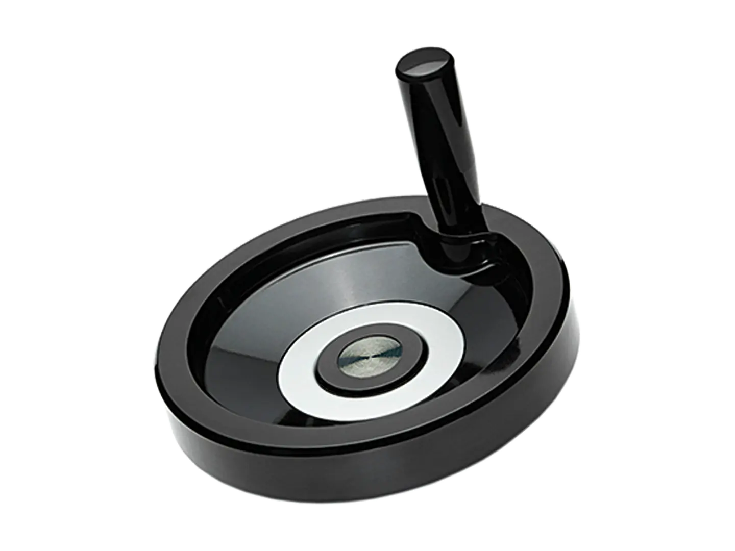 实心塑胶手轮 安装孔碳钢染黑, 阳极氧化铝环 通