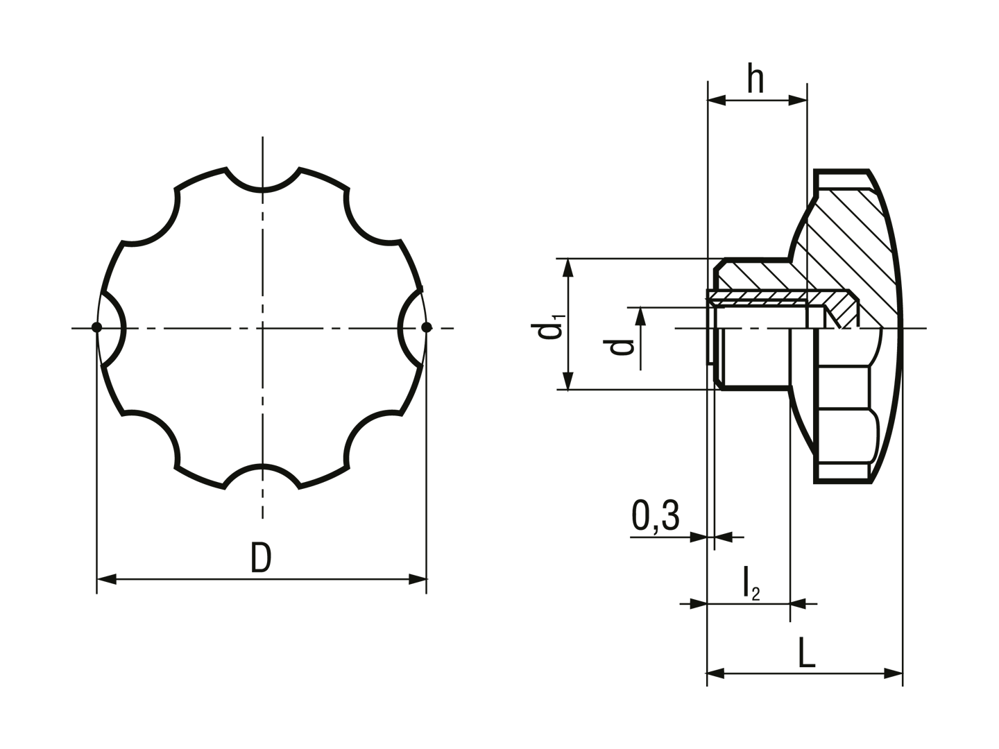 > 八瓣型旋钮帽 铜质盲孔内螺纹