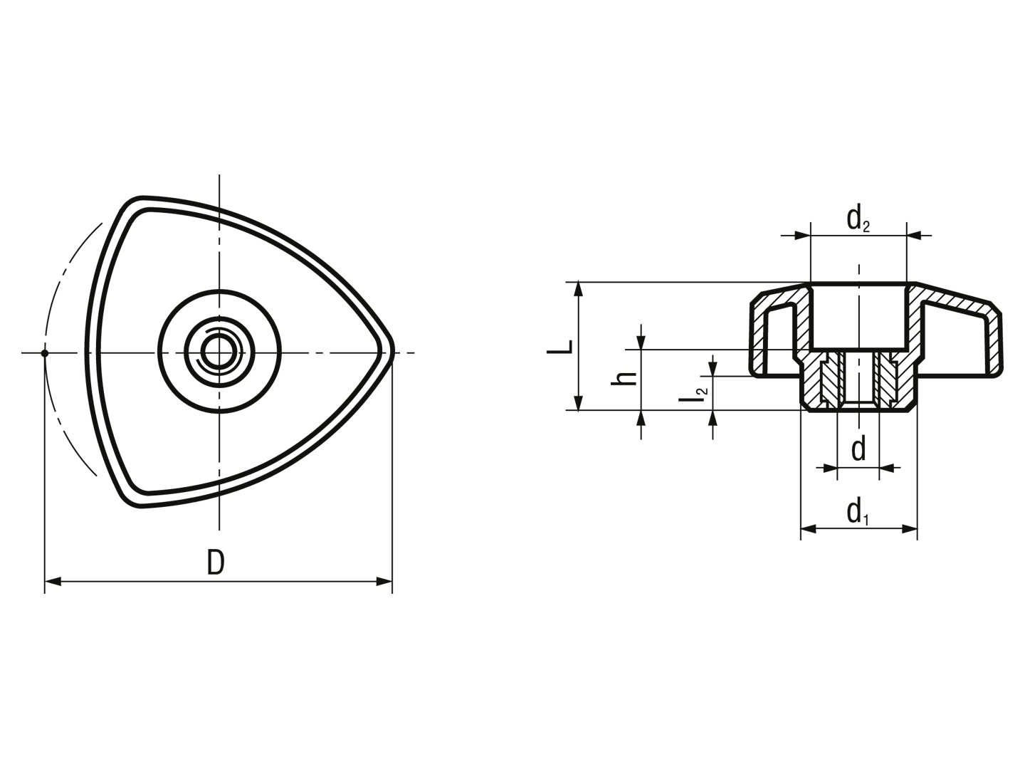 三角形旋钮螺帽 铝材中心盖,铜质通孔内螺纹