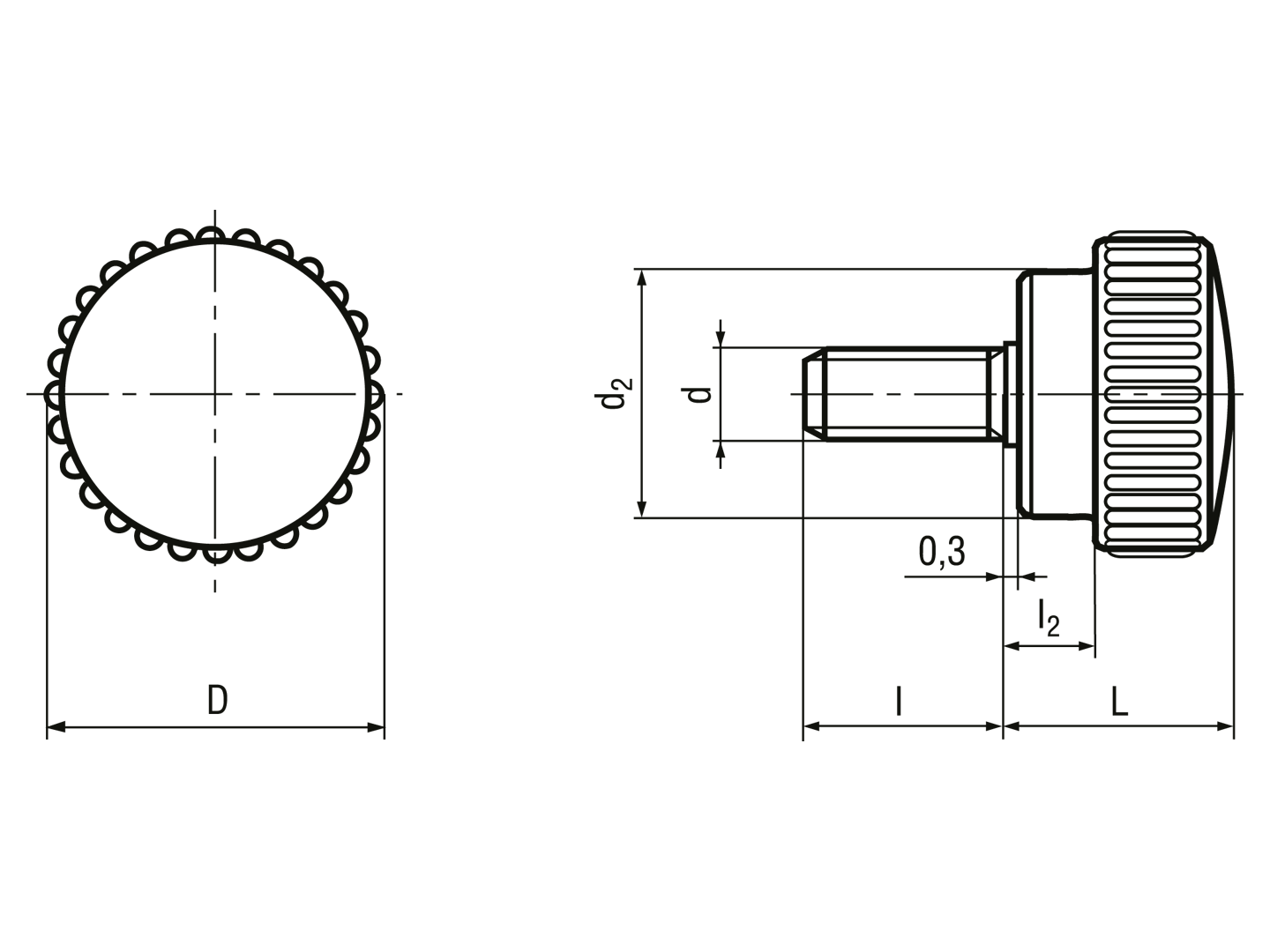 > 滚花头旋钮螺丝 外螺纹杆, 不锈钢