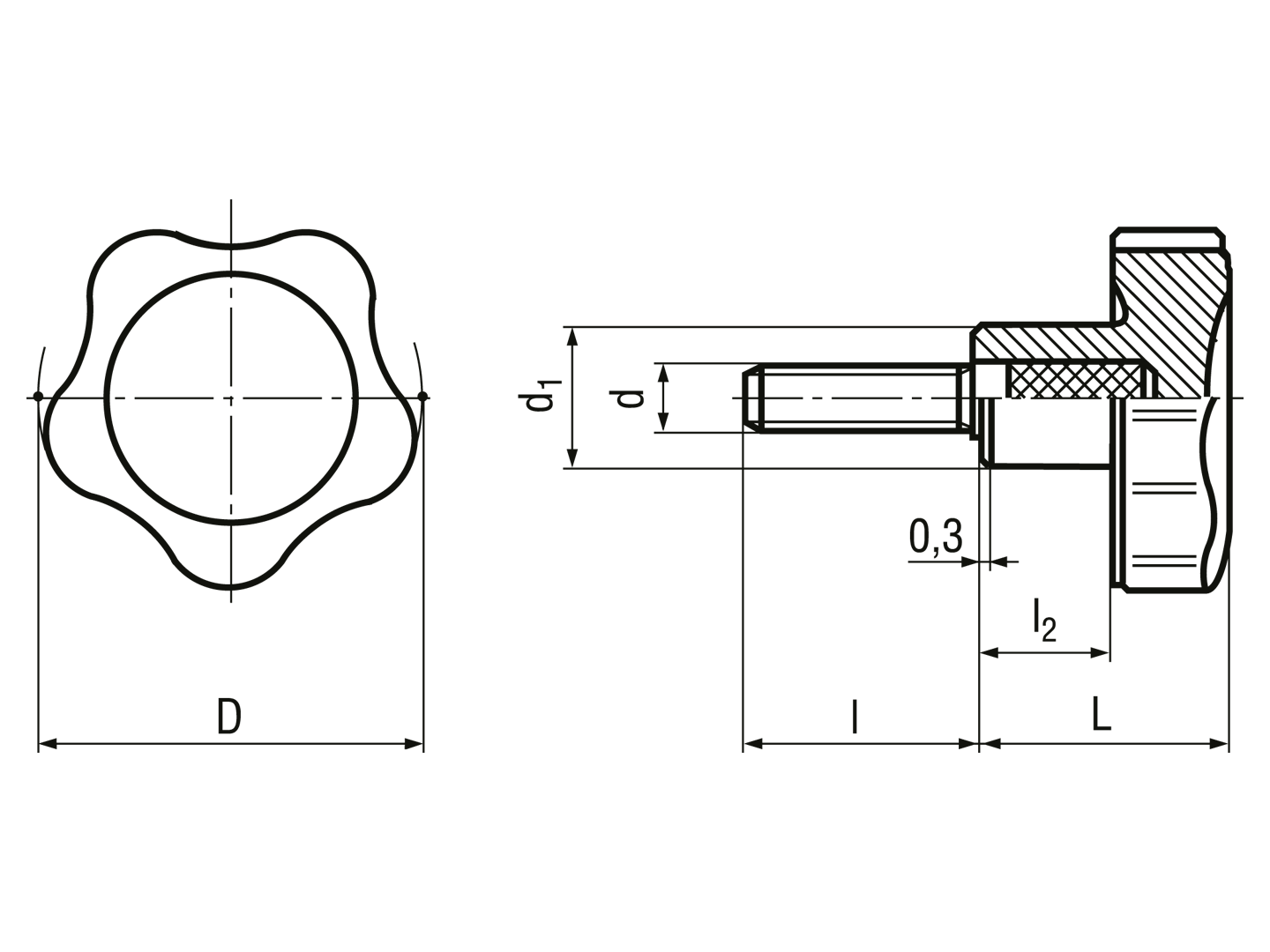 > 星型旋钮螺丝 外螺纹杆, 不锈钢