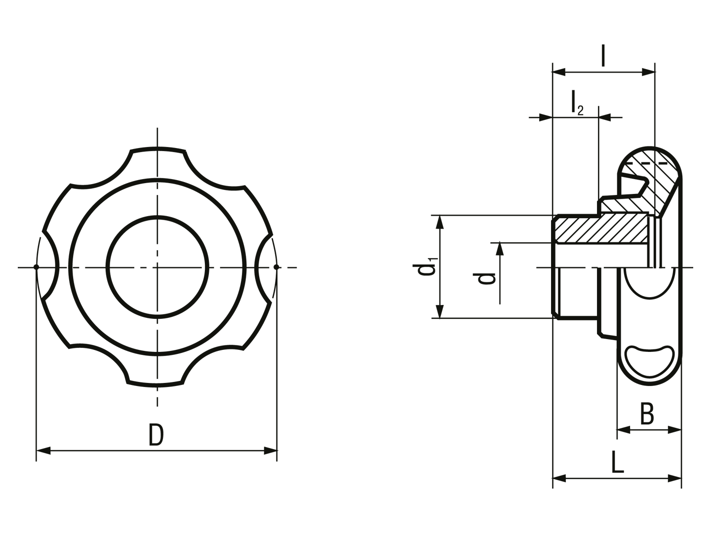 星型旋钮 金属轴套 染黑 碳钢衬套, 无钻孔