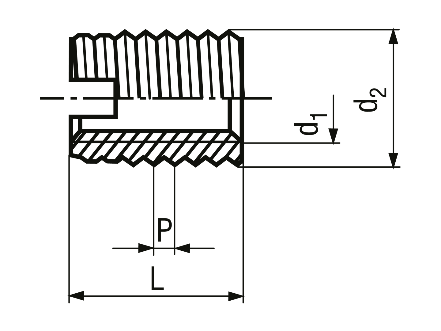 2. 将衬套旋入装配工具并垂直攻入孔心 (衬套会自行攻出螺纹)