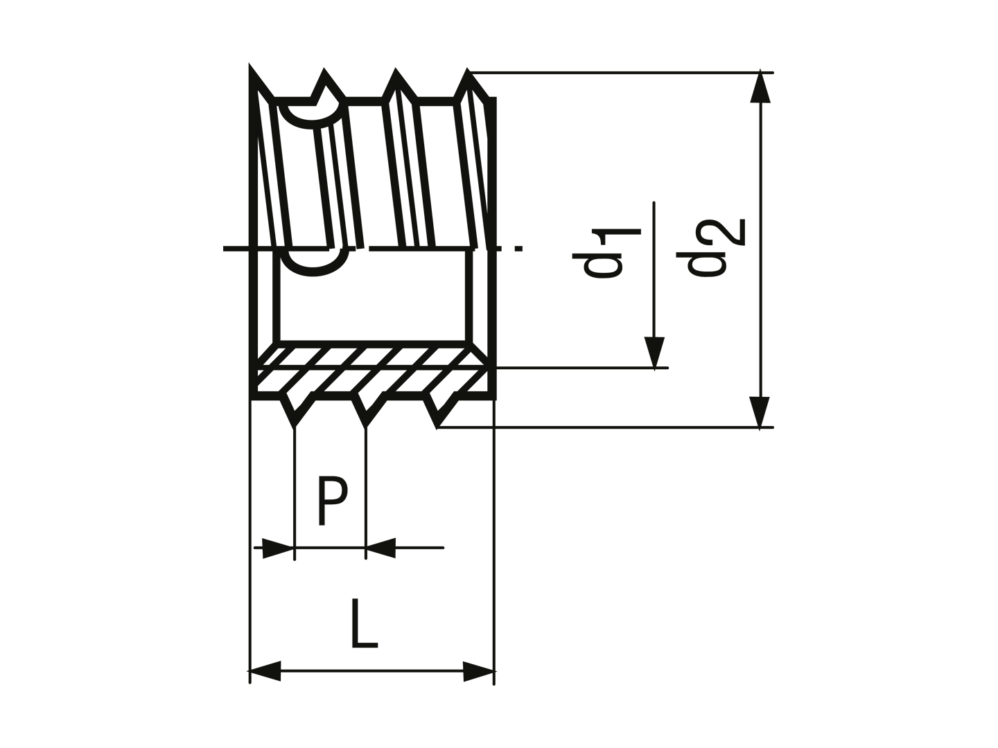 > 自攻螺纹衬套 带切削孔, 用于轻金属, 热塑性塑胶