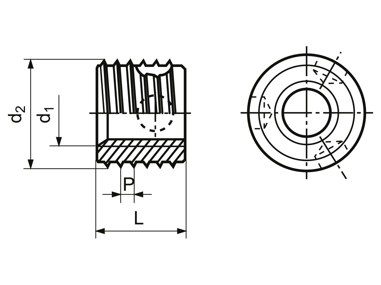 > 自攻螺纹衬套 带切屑槽, 用于轻金属, 热塑性塑胶