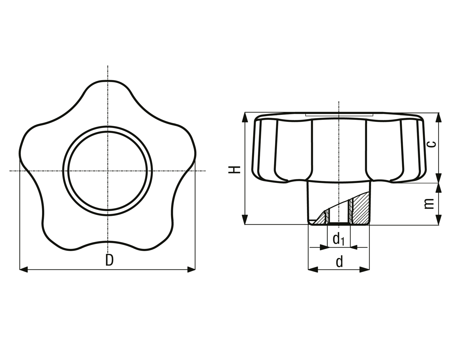 > Soft Touch星型旋钮螺帽 带金属轮毂和盲孔内螺纹