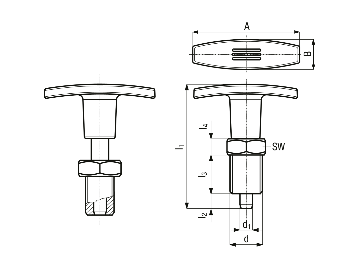 > 分割定位柱 带T型把手 无卡锁 带公制细牙1