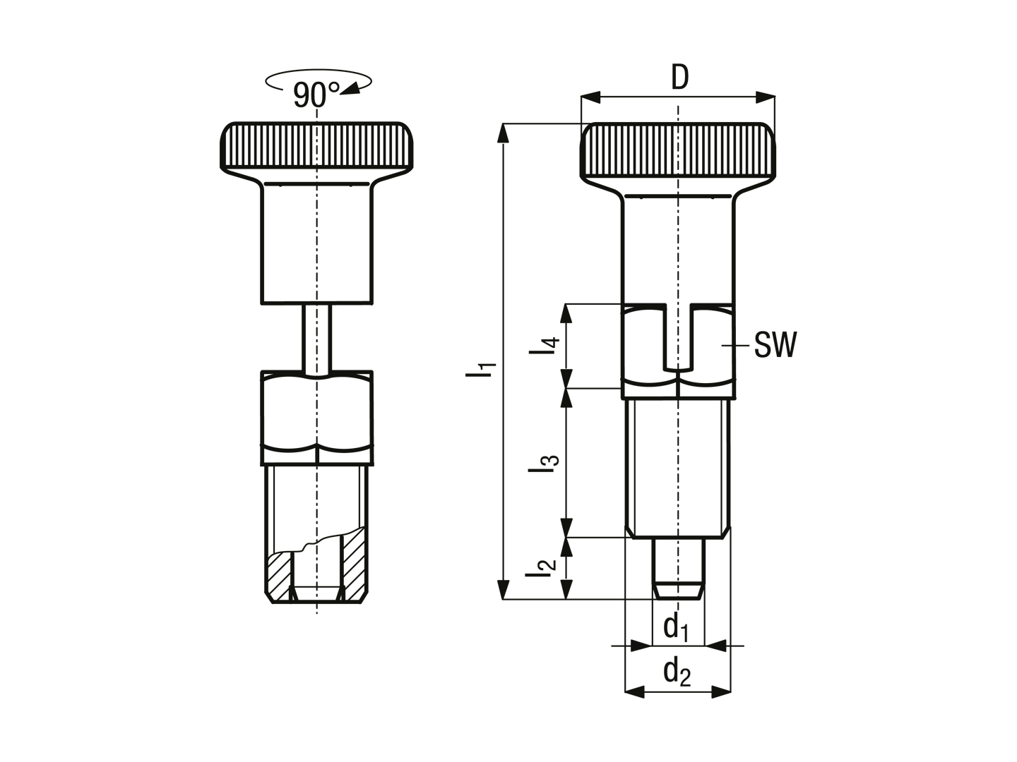 分割定位柱 带卡锁 带公制细牙和六角凸缘1