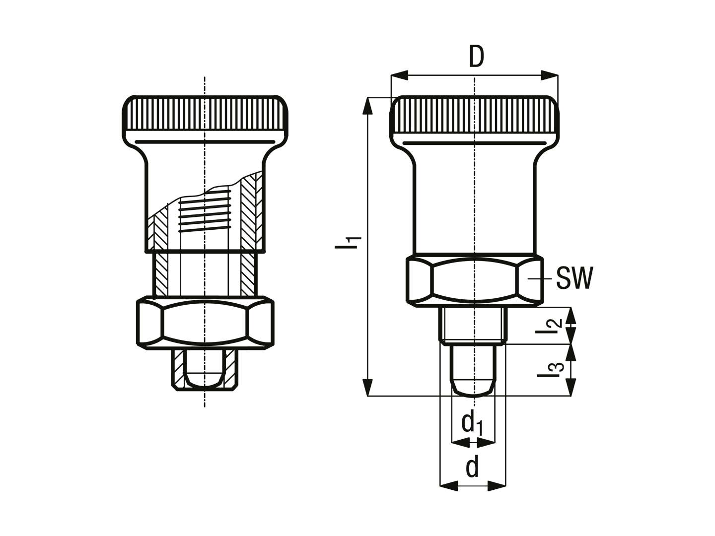 分割定位柱 紧密型 带卡锁 带公制细牙和六角凸