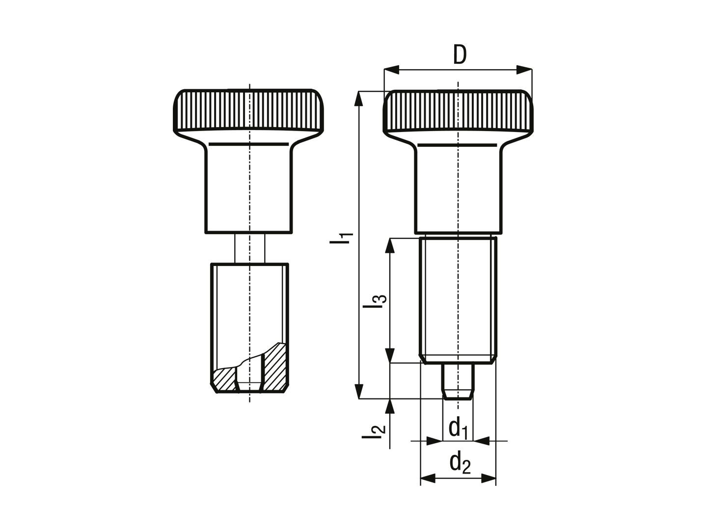 分割定位柱 无卡锁 带公制细牙, 无六角凸缘