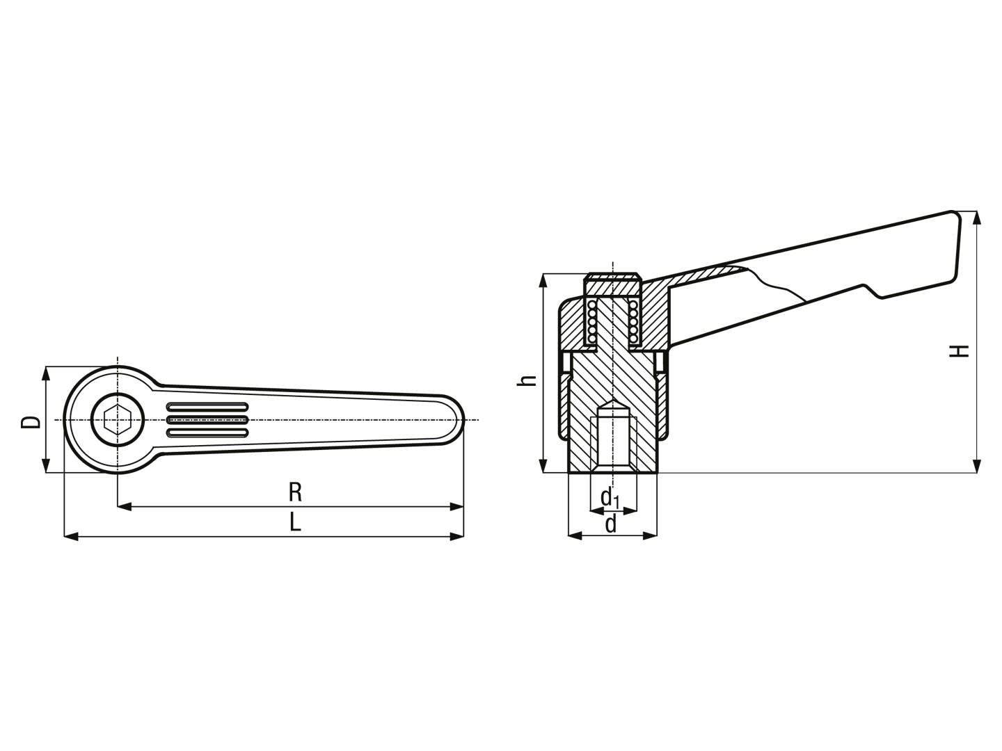 可调式把手螺帽 金属轮毂带盲孔内螺纹, 增强型