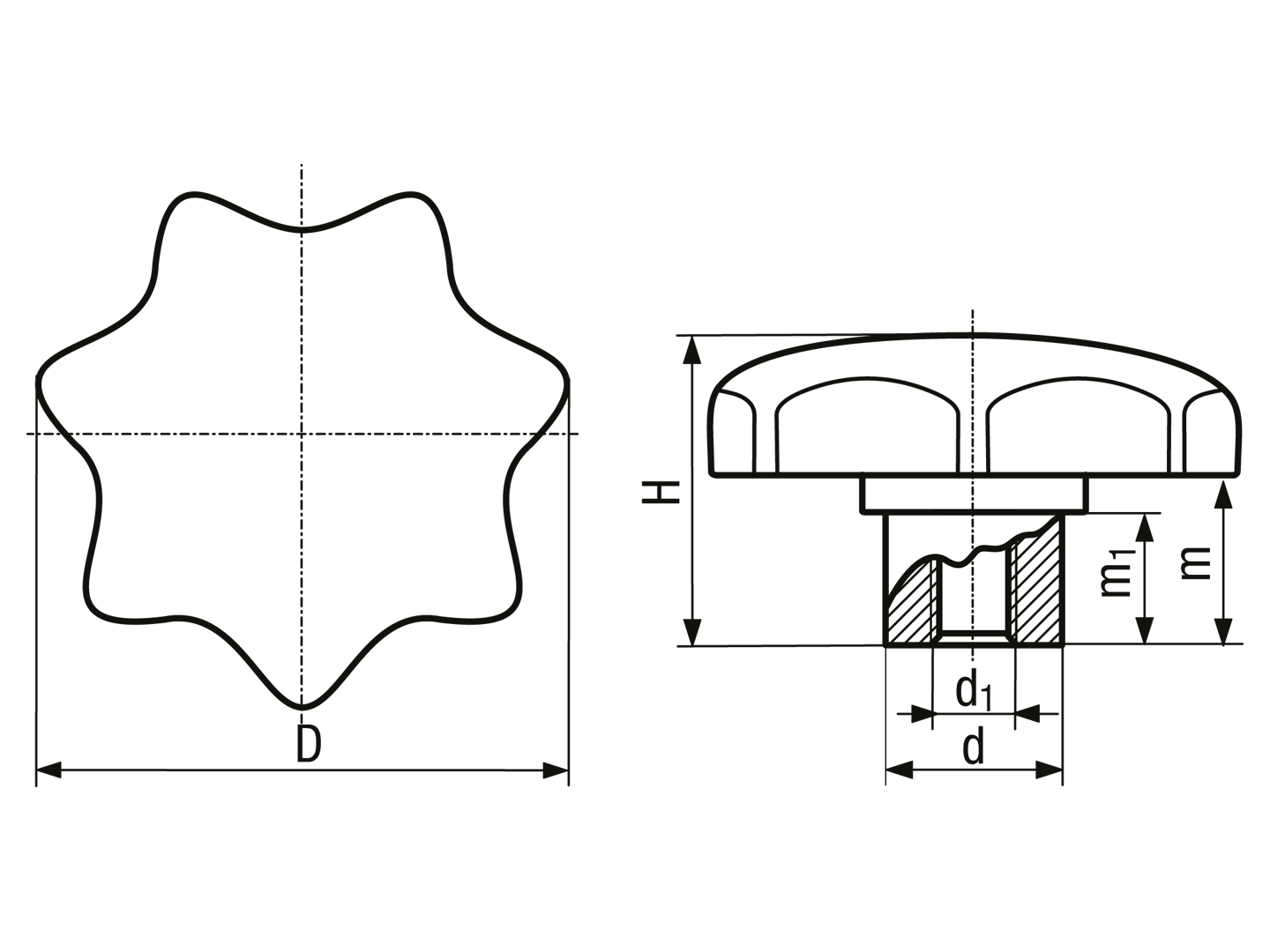 > 星型旋钮螺帽 带凸形钢轴套和盲孔内螺纹