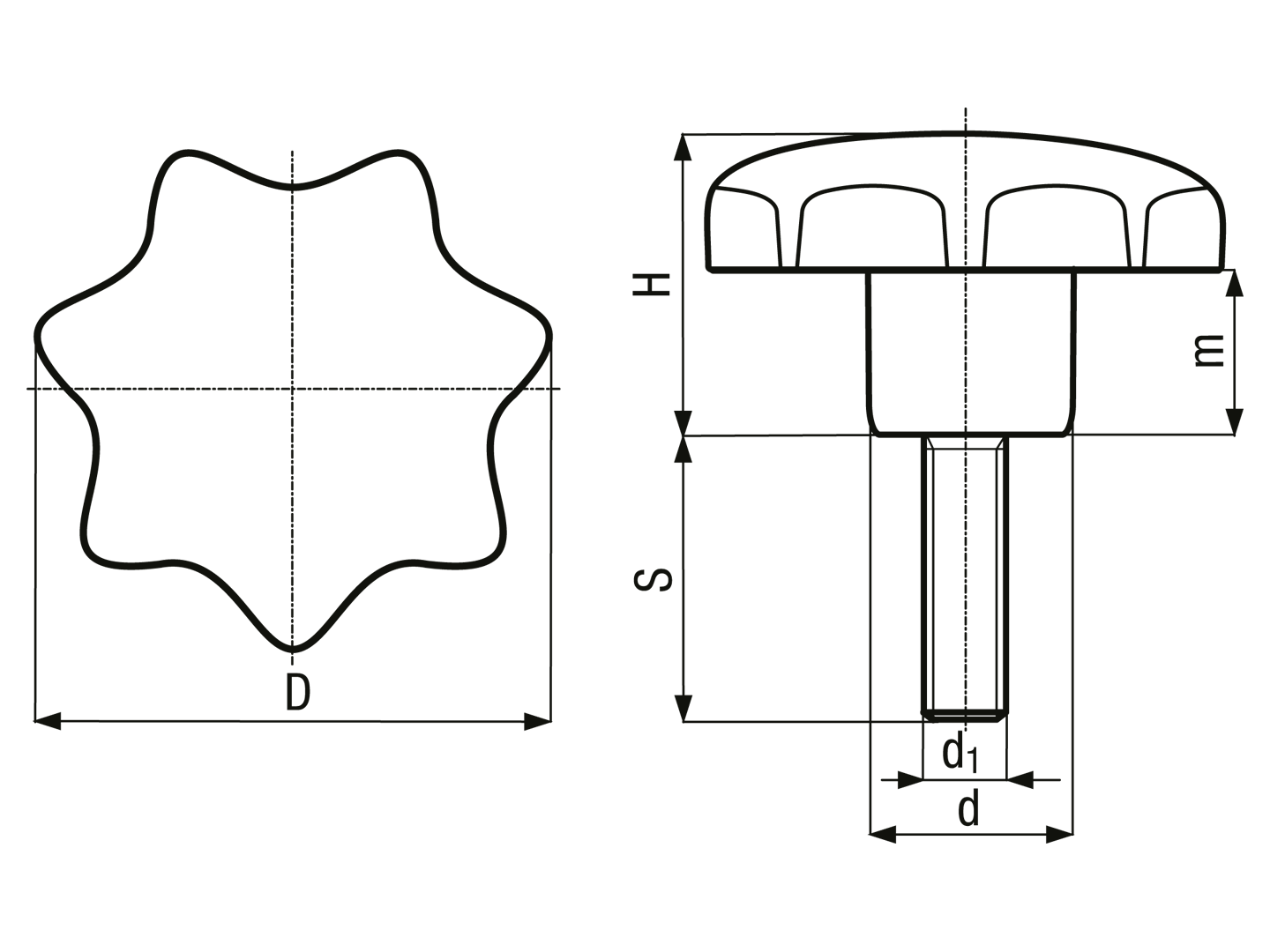 星型旋钮螺丝 带螺丝和凸形钢轴套