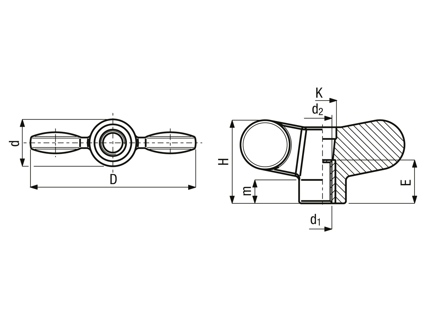 翼型旋钮螺帽 带金属轮毂, 盲孔内螺纹