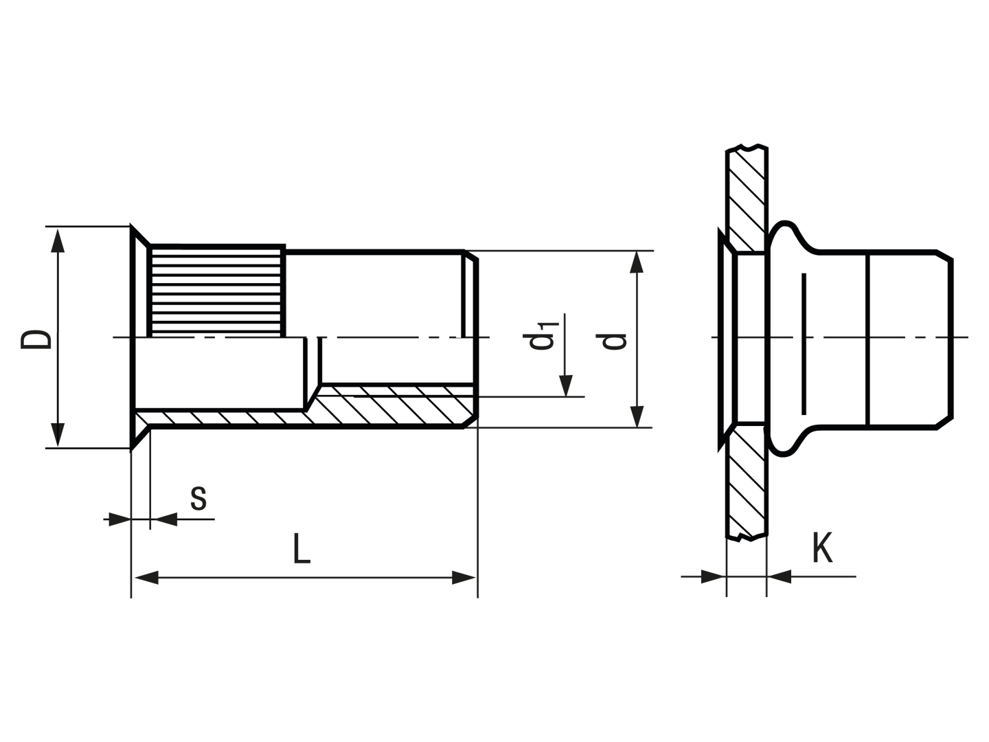 在拉帽组装后, 拉帽头部应高出被夹紧件平面至少0,1mm. 在锁紧时, 被锁固的部件将压紧拉帽头部, 以防止拉帽旋转.