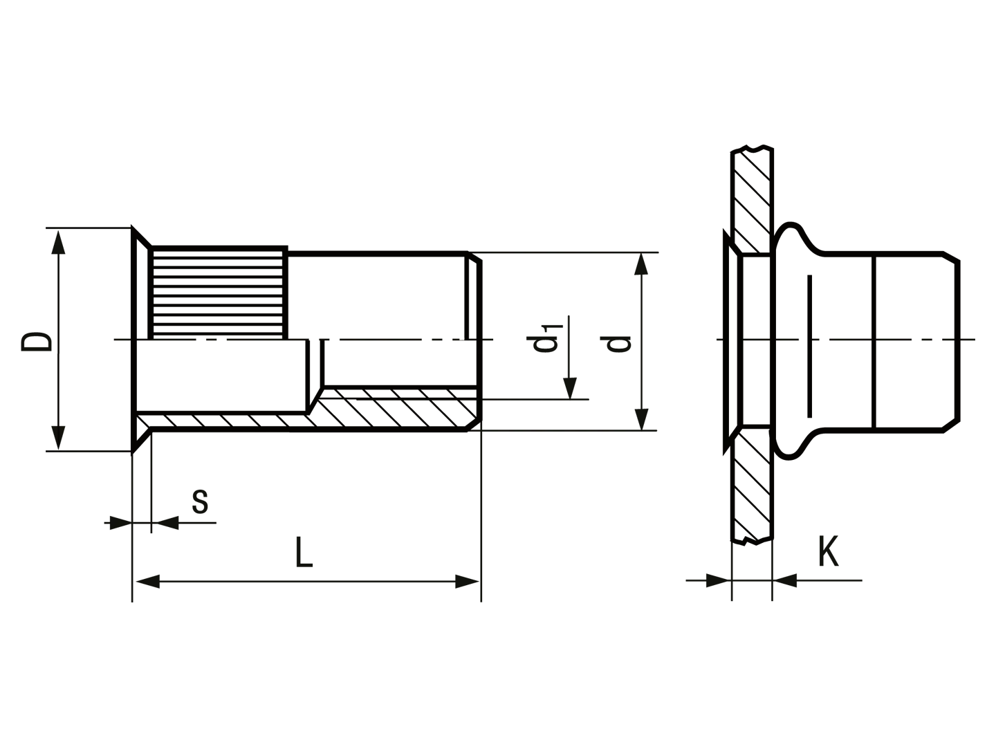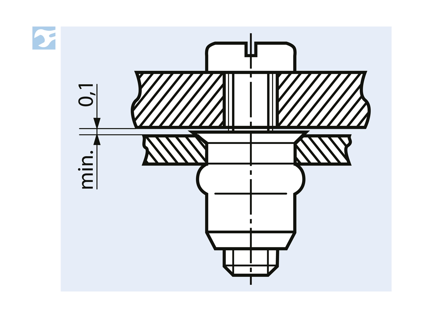 在拉帽组装后, 拉帽头部应高出被夹紧件平面至少0,1mm. 在锁紧时, 被锁固的部件将压紧拉帽头部, 以防止拉帽旋转.