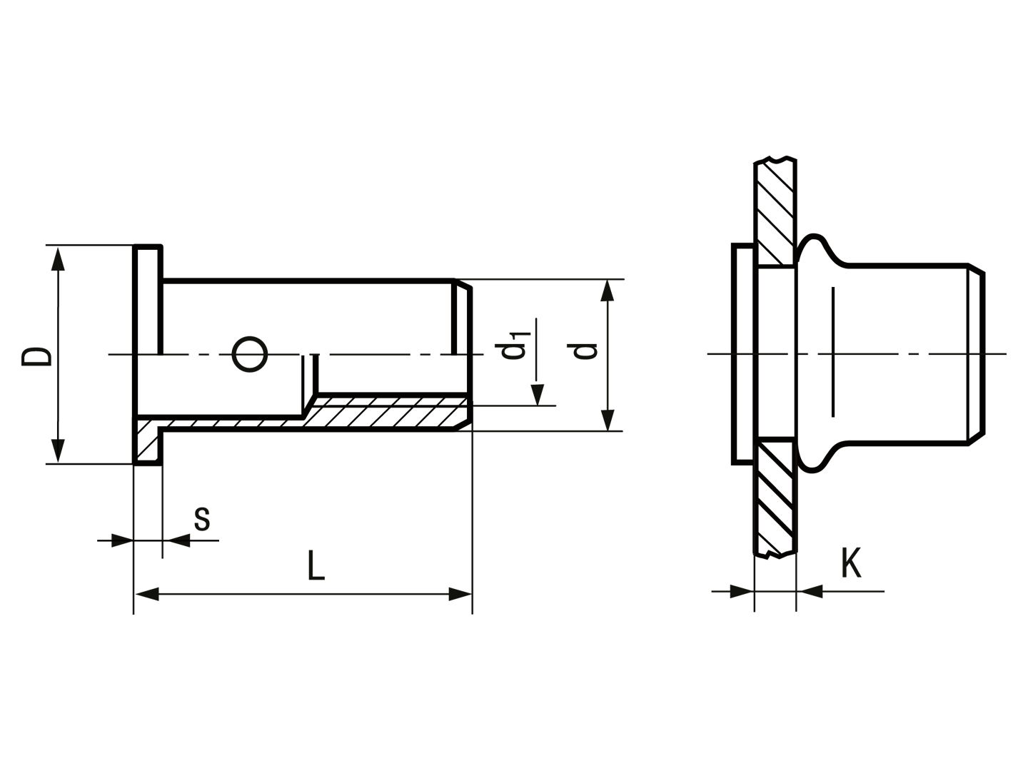 > 拉帽 多重铆接范围 圆形杆径, 平头, 通孔型1