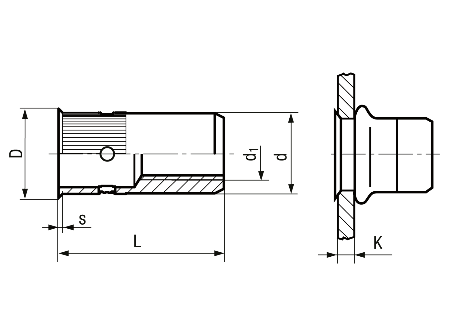 > 拉帽 滚花杆径, 小埋头, 通孔型2