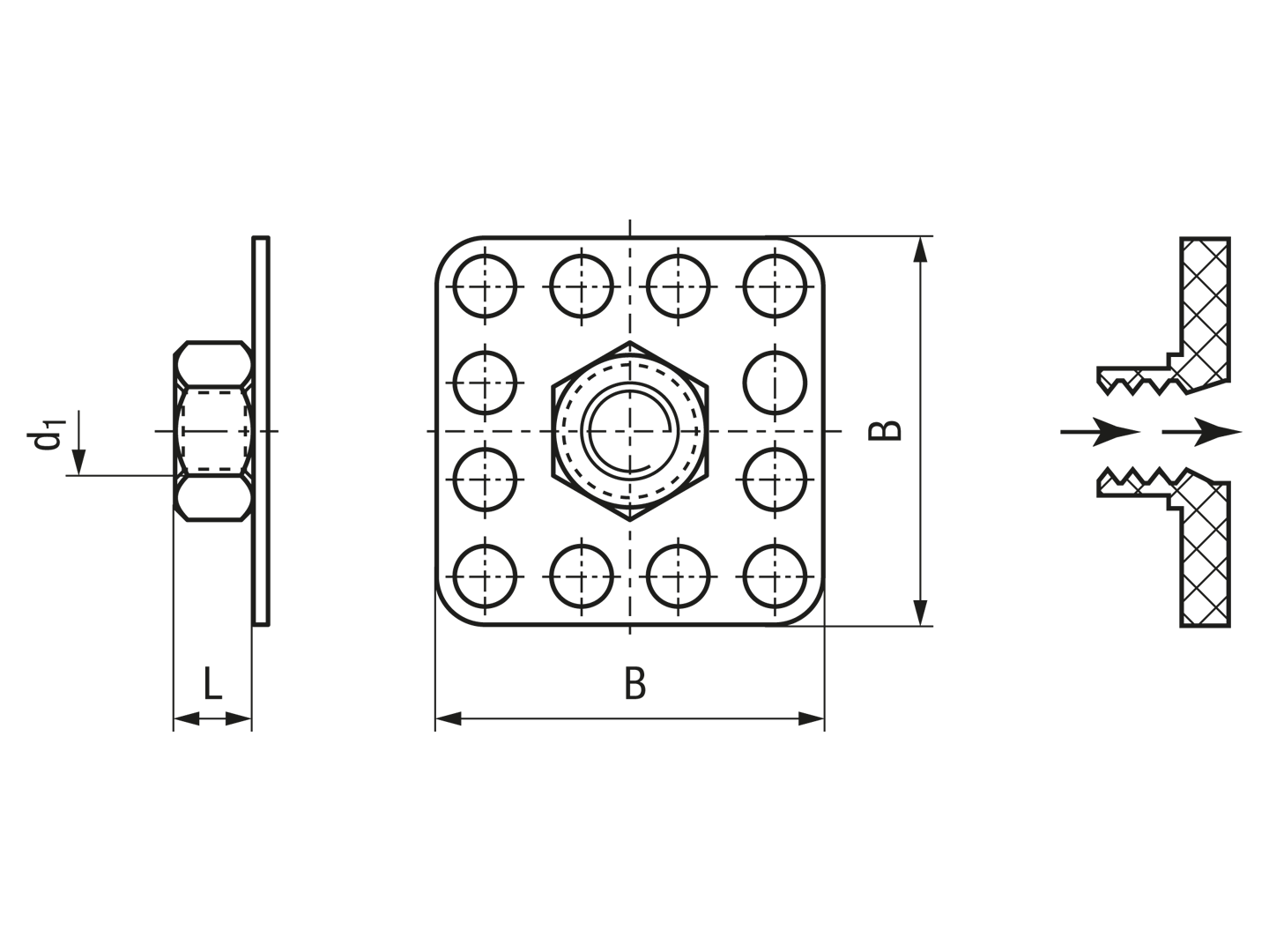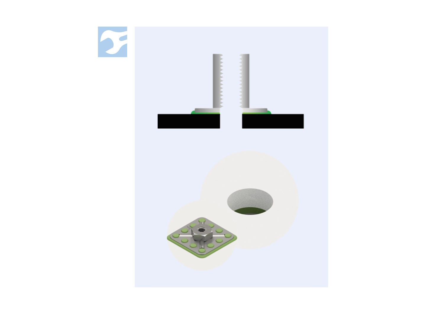 > 螺帽压焊 正方形头 32 x 32 mm 通孔型