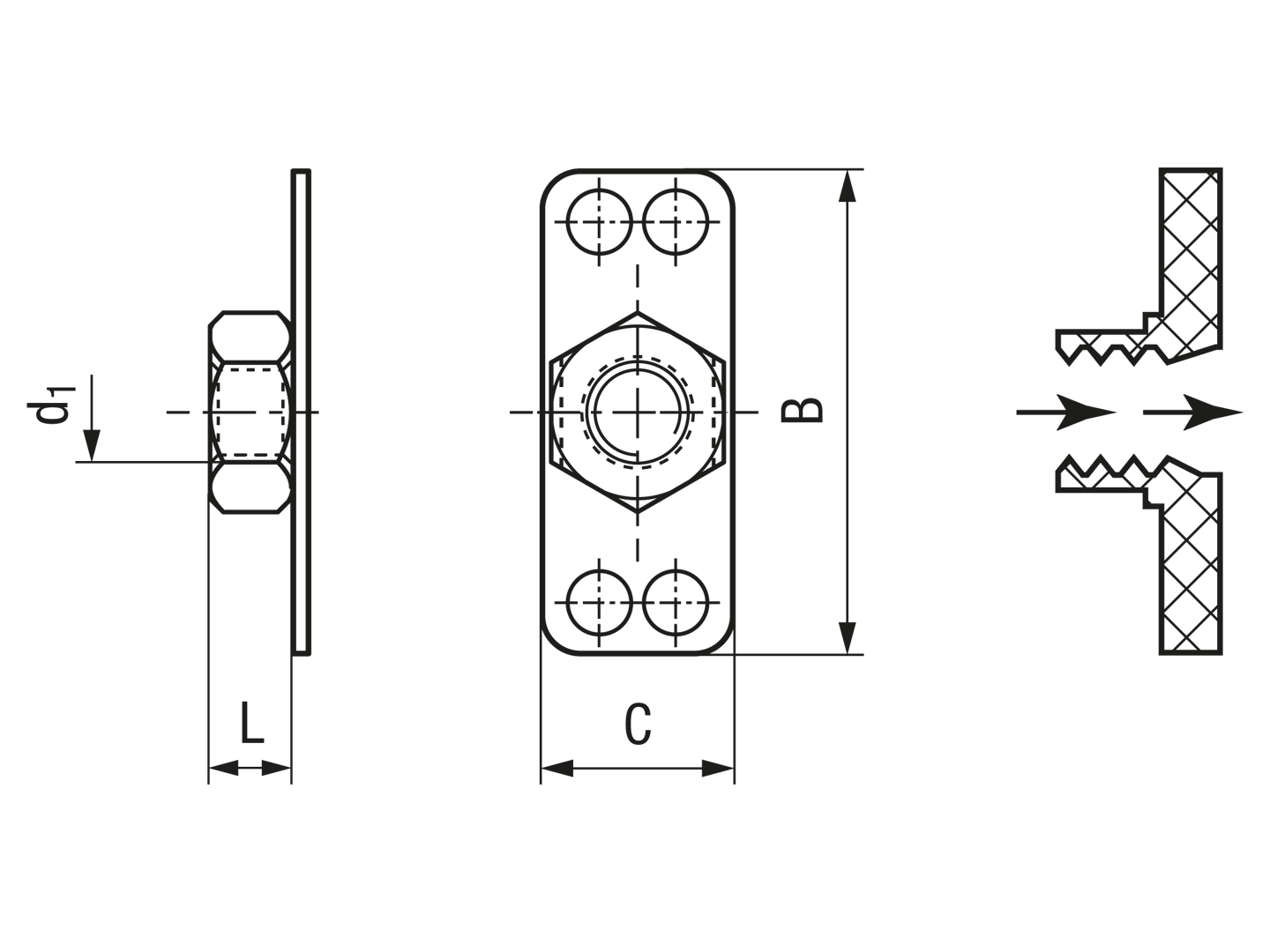 螺帽压焊 正方形头 32 x 32 mm 通孔型