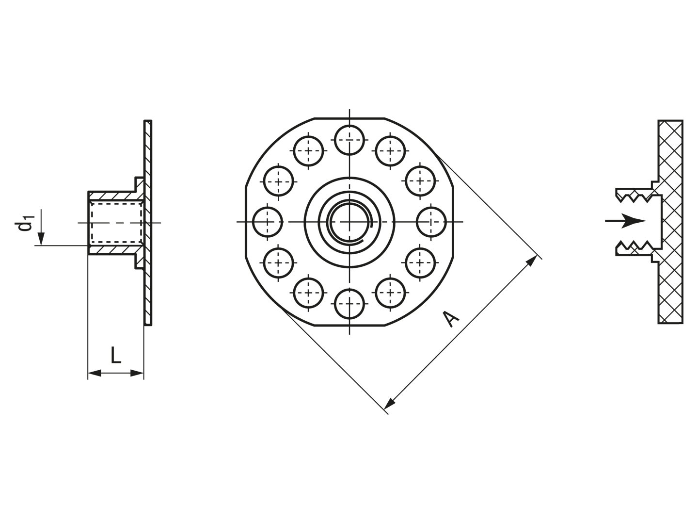 内螺纹套管压焊 八角形圆头 Ø 38 mm 盲孔型