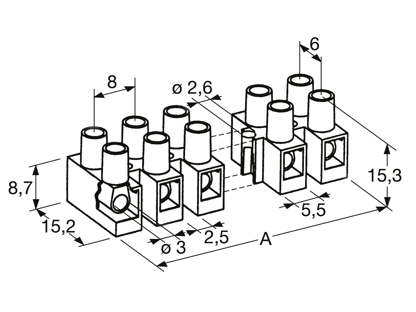 材料防火等级: UL 94 V-2; IEC 695-2-1 至 850 °C 和 IEC 695-2-2 一般工作温度: max. 125 °C 短时间的工作温度: max. 160 °C 测试电压: 2500 V 测试电流: 24 A 夹器: 黄铜, 镀镍 螺丝: M3x5, 碳钢, 镀锌