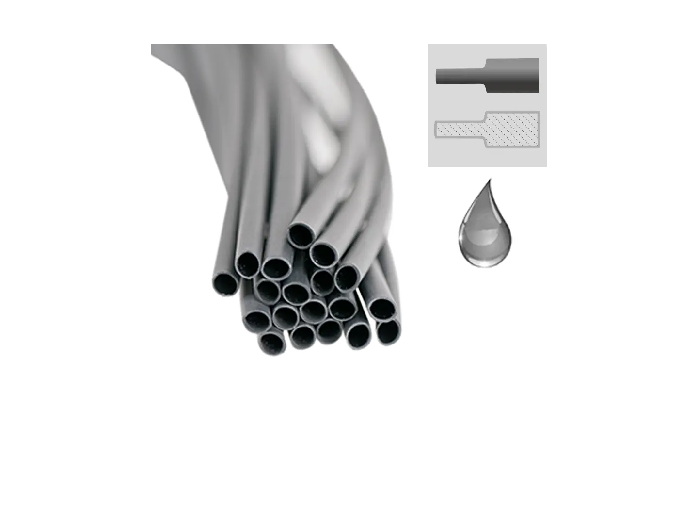 热缩套管耐火,有黏胶涂层。热熔性黏胶可保证有效的防潮绝缘性。因为热收缩比大,此软管也非常适合套住直径差异大的物体。